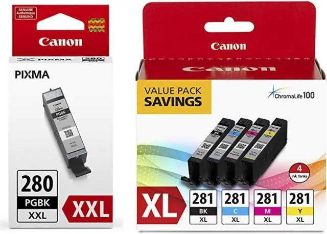 Canon CLI-281 XL BKCMY 4-Color Ink Tank Value Pack (2037C005) + Canon PGI-280 XXL Pigment Black Ink Tank (1967C001)