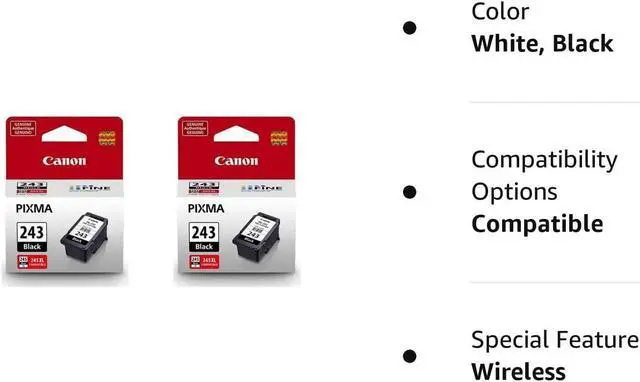 The Canon PG-243 Black Ink Cartridge for PIXMA PIXMA MG3020, MG2924, MG2922, MG2920, MG2520, MG2420 Wireless All-In-One Printers, PIXMA iP2820 Wireless Inkjet Printer, PIXMA MG2525 Affordable Inkjet All-In-One, PIXMA MX492 Wireless Office All-In-One PIXMA TS3120 PIXMA MG3020 PIXMA MG2924 PIXMA MG2922 PIXMA MG2920 PIXMA MG2525 PIXMA MG2520 PIXMA MG2420 PIXMA iP2820 PIXMA MX492 PIXMA TS3120 White Wireless