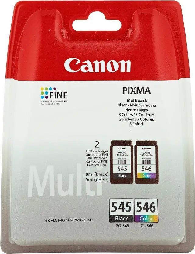Canon PG-545 / CL-546 Multipack - Print cartridge - 1 x black, colour (cyan, magenta, yellow) - 180 pages - for PIXMA MG2250, MG2450, MG2550