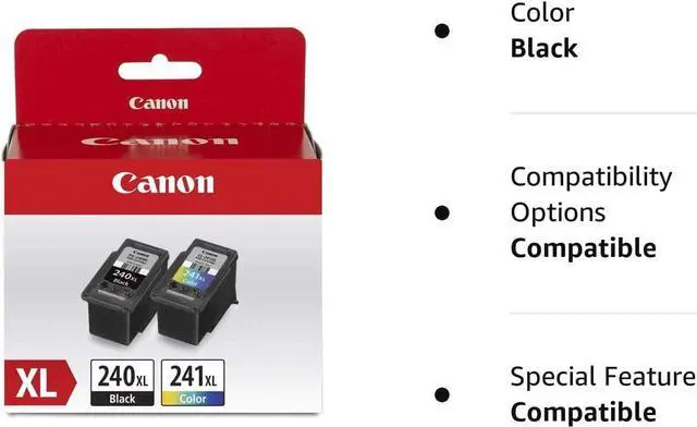 Exceptional Quality & Remarkable Durability The PG-240 XL Black ink is used for printing documents on plain paper and ensures sharp black text, and the CL-241 XL Color ink is used for printing vibrant photos and images XL capacity ink cartridges can help you save money, print more when you need to and extend the time between replacing ink cartridges Combined with Genuine Canon photo paper this ink protects your photos from fading for longer, thanks to the Chroma Life 100 System Genuine Canon inks provide peak performance that is specifically designed for compatible Canon printers