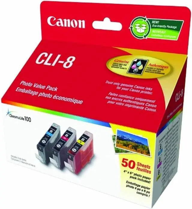 The genuine Canon CLI-8 inks bring amazing color and longevity to your photos. With these individual ink tanks you can reduce waste and save you money by only replacing the color that runs out. Designed with FINE (Full Photolithographic Inkjet Nozzle Engineering) technology, your photos will realize added sharpness, detail and quality.