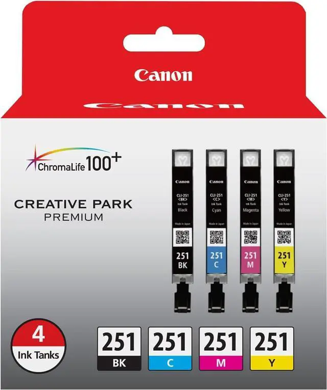 Canon CLI-251 BK/CMY 4 PK Value Pack Ink for Canon Inkjet Printers