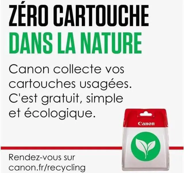 Zero cartridge in nature Canon collects your used cartridges, it's free, simple and environmentally friendly. Appointment on the Canon website with ink section