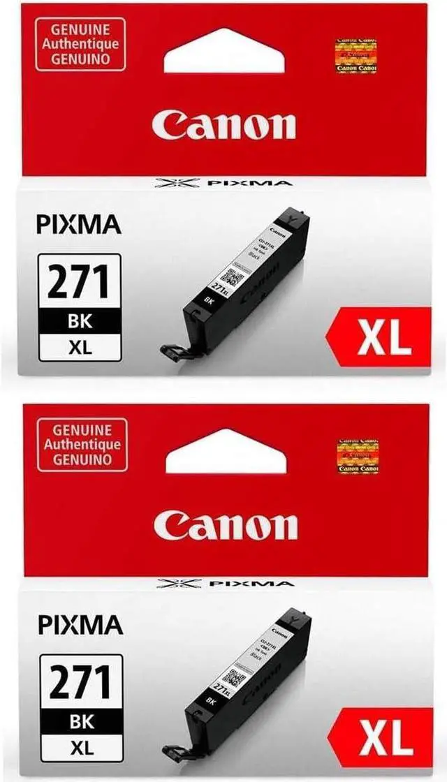 Canon 2 Pack CLI-271 XL Black Ink Tank for Select PIXMA MG, TS Series Printers - 10.8ml