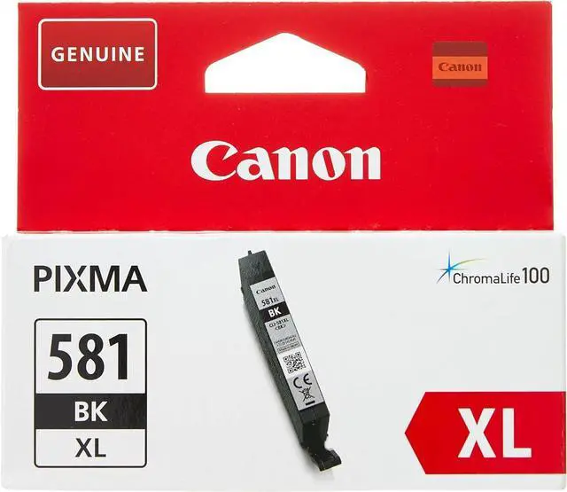 As a genuine Canon inkjet cartridge, the CLI-581XL Black cartridge ensures you receive optimal performance from your Canon printer. With 8.3ml of long lasting ChromaLife100 ink, this high yield cartridge delivers clear crisp text and deep blacks for quality and vibrant photos and documents. Compatible with Canon Pixma TS8152, TS9155, TS6150, TS8150, TS9150, TR8550, TS8151, TR7550, and TS6151 printers, this pack contains 1 inkjet cartridge