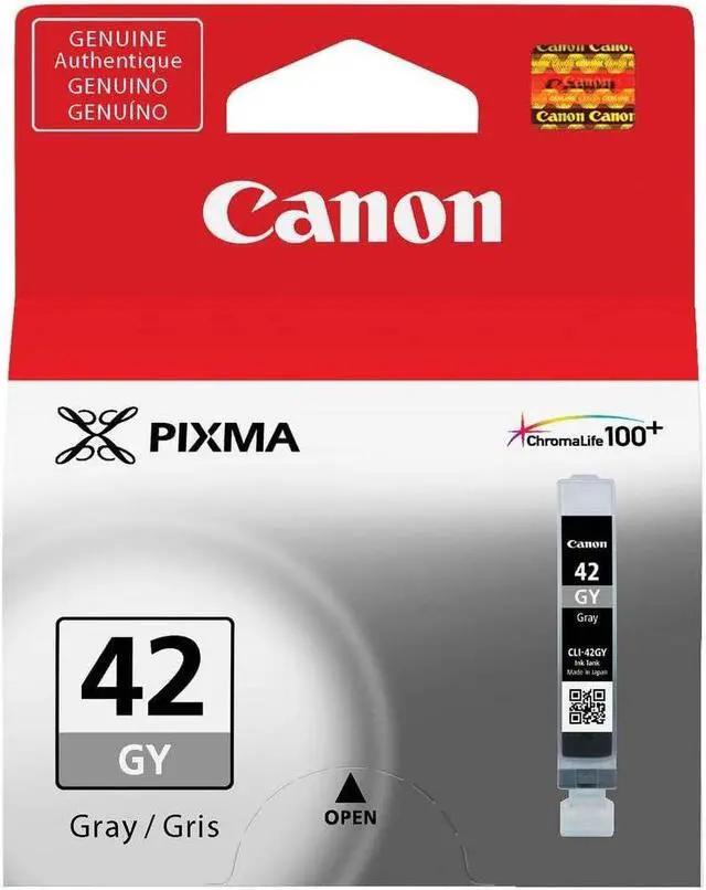 The Canon CLI-42 Gray Ink Cartridge is a specially formulated ChromaLife100+ ink. The ink produces professional quality & long-lasting photo prints, ideal for displaying printed works of art. Canon's proprietary FINE (Full Photolithographic Inkjet Nozzle Engineering) technology provides sharpness and detail. The individual ink system helps increase efficiency since you'll only be replacing the color that runs out.