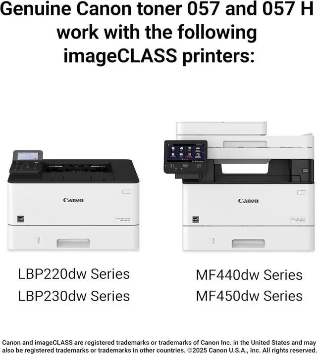 The MF440 series and the LBP220 series use Canon GENUINE Toner 057 High Capacity Black (yields 10,000 pages), ISO/IEC standard.