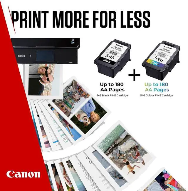 Since we were founded in Japan in 1937, Canon has been helping people reimagine and push the boundaries of what is possible through imaging. Canon PG-545/CL-546 Genuine Printer Ink Cartridges Pack of 2 (1 x Black, 1 x Colour) includes black and colour inks with 50 sheets of Glossy Photo Paper. Some things work better together - combining your Canon printer with genuine Canon ink cartridges and photo paper ensures optimum performance and superb quality with every print - only genuine Canon Ink provides consistent quality prints 100% of the time*. Includes 50 sheets of GP-501 10x15cm Glossy Photo Paper to produce economic vibrant photo prints great for holiday and travel photos. Compatible with Canon printers for home use and office - suitable for PIXMA TR4550, PIXMA TR4551, PIXMA iP2850, PIXMA MG2450, PIXMA MG2550, PIXMA MG2950, PIXMA MX495, PIXMA MG3050, PIXMA MG3051, PIXMA MG3052, PIXMA MG3053, PIXMA MG2550S, PIXMA MG2555S, PIXMA TS3150, PIXMA TS3151, PIXMA TS305, PIXMA TS205, PIXMA TS3350, PIXMA TS3351, PIXMA TS3352, PIXMA TS3450, PIXMA TS3451, PIXMA TS3452, PIXMA TS3355, PIXMA TR4650, and PIXMA TR4651. Genuine Canon Ink produces on average up to 35% more quality prints than imitation cartridges*. These printer ink cartridges are 100% recyclable. The Canon Cartridge Recycling Programme is the free, easy way to return your printer ink and toner cartridges to be reused or recycled - reduce your ecological footprint and help save the planet. Canon is committed to a no waste to landfill policy. Each element of every returned cartridge is reused or recycled; no part of the cartridge is sent to landfill. Genuine Canon ink, toner and paper are designed to work in harmony with your Canon printer to ensure high quality, reliable performance and excellent value with every print. *Based on a 2018 Keypoint Intelligence - Buyers Lab study commissioned by Canon comparing Canon cartridges with a set of third party cartridges.