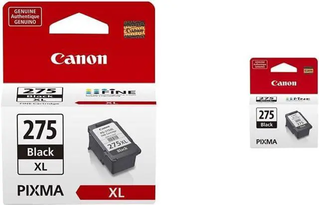 This bundle includes two Canon pigment black ink cartridges: one high-capacity XL (PG-275XL AMR) and one standard capacity (PG-275 AMR).