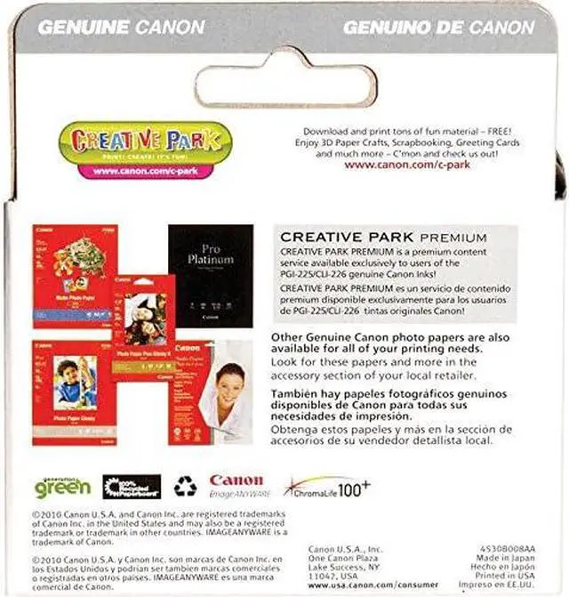 Canon PGI-225/CLI-226 Ink Tank Combo Pack and Canon CLI-226 Gray Ink Tank. The pigment ink produces brilliant, highly stable images when used with appropriate media for fine art applications. It features a large-capacity ink tank for superior text quality. Because it is part of an individual-tank system, it offers more efficiency and is easy to replace. Smart LEDs let you know when your ink level is getting low and when it is empty