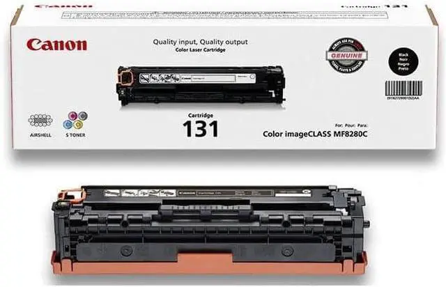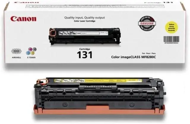 Canon genuine 131 toner set includes 131 Black (6272B001), Canon 131 Cyan (6271B001), Canon 131 Magenta (6270B001), and Canon 131 Yellow (6269B001) toner cartridges.page. (Black) yields up to 1,400 pages , and 1,500 pages (Color) at 5% coverage. It is compatible with MF620 Series, MF8280Cw, LBP7110Cw. Canon toners are engineered to work as a system to provide crisp text, vivid images,Bold and sharp text and Consistent performance. Manufacturer part number 131 Black (6272B001), 131 Cyan (6271B001), 131 Magenta (6270B001), 131 Yellow (6269B001)