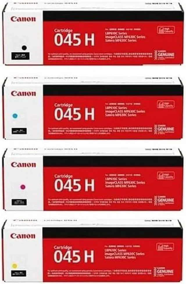 BRAND: Canon 045H high yield toner cartridge Set includes (HK,HC,HM,HY)) Pack of 4 in retail packaging