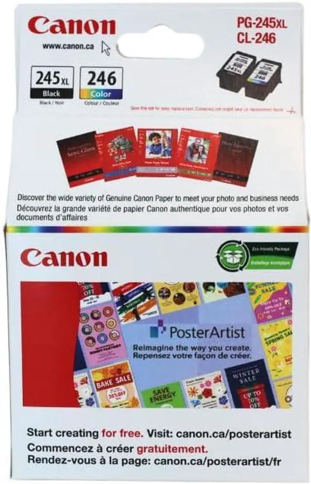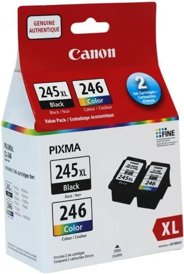 High-Yield Value Pack Includes 2 Canon ink cartridges: PG-245XL Black yields up to 300 pages and CL-246 Colour yields up to 100 pages based on mixed text and graphic documents, helping reduce frequent replacements.