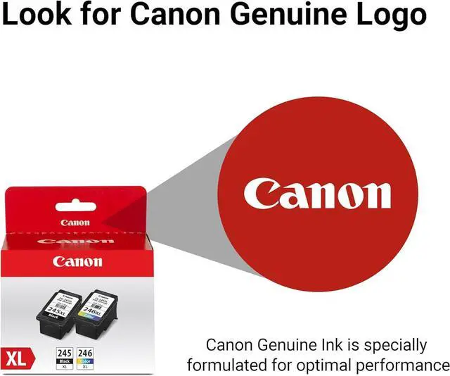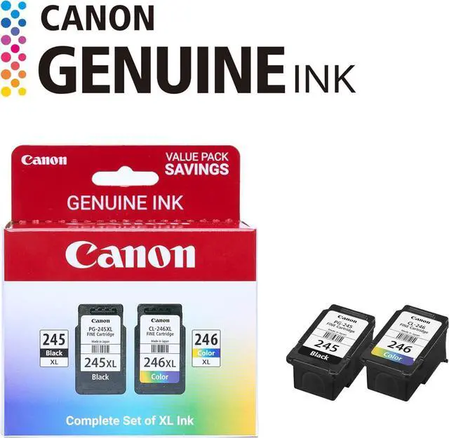 The PG-245 XL black ink is used for printing documents on plain paper and ensures sharp black text, and the CL-246 XL color ink is used for printing colorful photos and images
