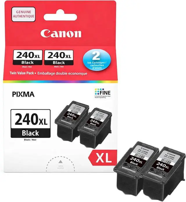 High-Yield Twin Pack Value Includes 2 PG-240XL Black ink cartridges, each yielding up to 300 pages based on mixed text and graphic documents, helping reduce replacement frequency.