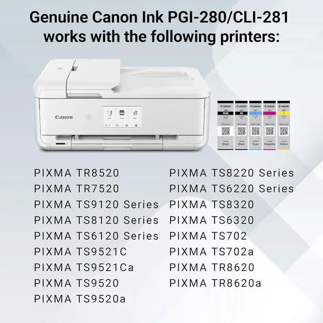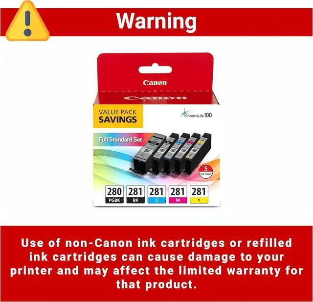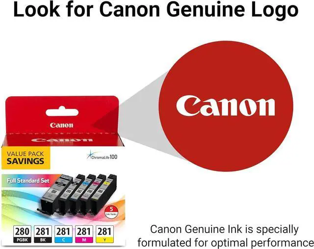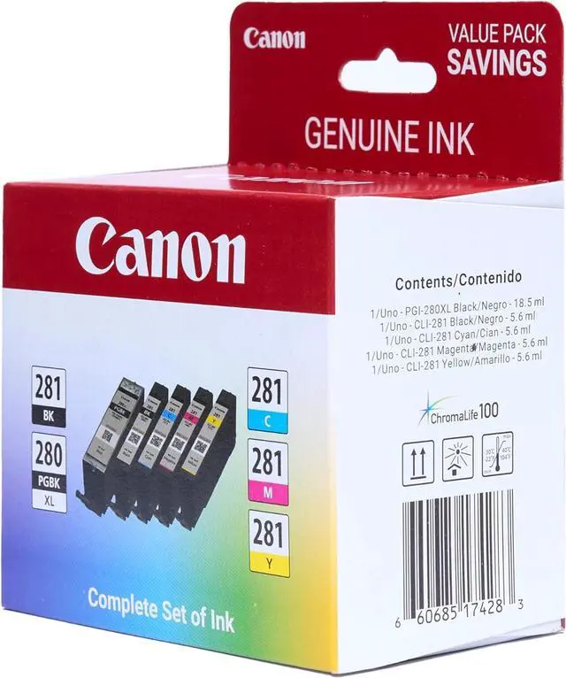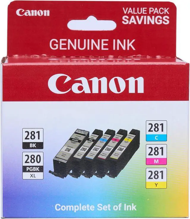 This value pack includes PGI-280 Pigment Black ink for your text documents, and a set of CLI-281dye-based inks for printing great looking photos and images.