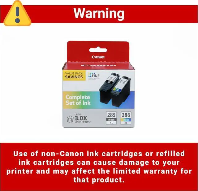 Value pack of 2 cartridges: PG-285 XL Black ink yields up to 400 pages, CL-286 XL color ink yields up to 400 pages. XL capacity ink cartridges can help you save money, print more when you need to and extend the time between replacing ink cartridges.