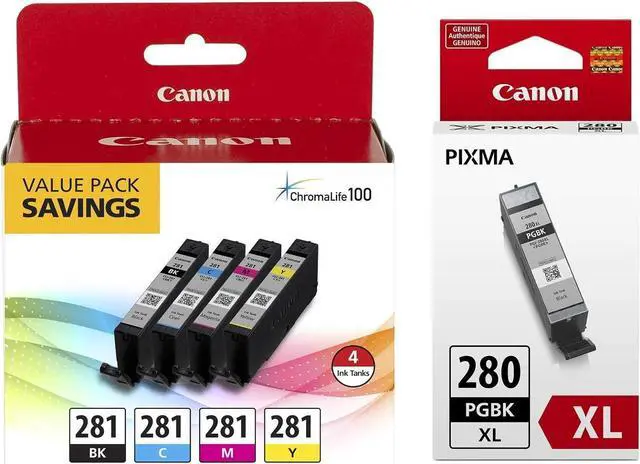 Canon CLI-281 BKCMY 4-Color Ink Tank Value Pack (2091C005) + Canon PGI-280 XL Pigment Black Ink Tank (2021C001)