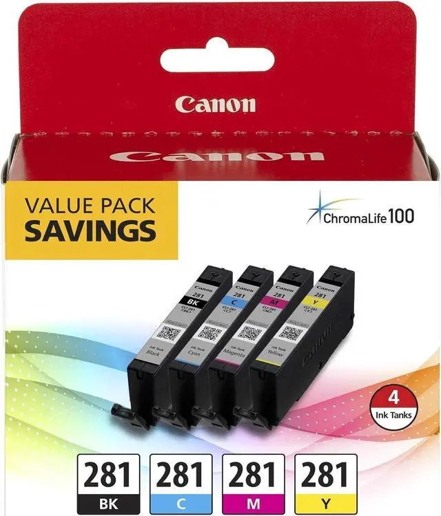 Genuine Canon CLI-281 BKCMY 4-Color Ink Tank Value Pack 2091C005