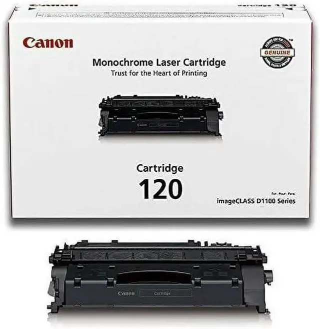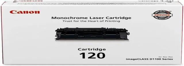 Canon genuine black standard yield toner cartridge 2617B001AA, with a maximum print yield of 5,000 pages. It is compatible with the following devices Canon imageCLASS D1120, D1150, D1170, D1180, D1320, D1350, D1370, D1520, D1550. Canon toner cartridges deliver long-lasting quality to all your photos and documents. Item number 120 , 2617B001AA