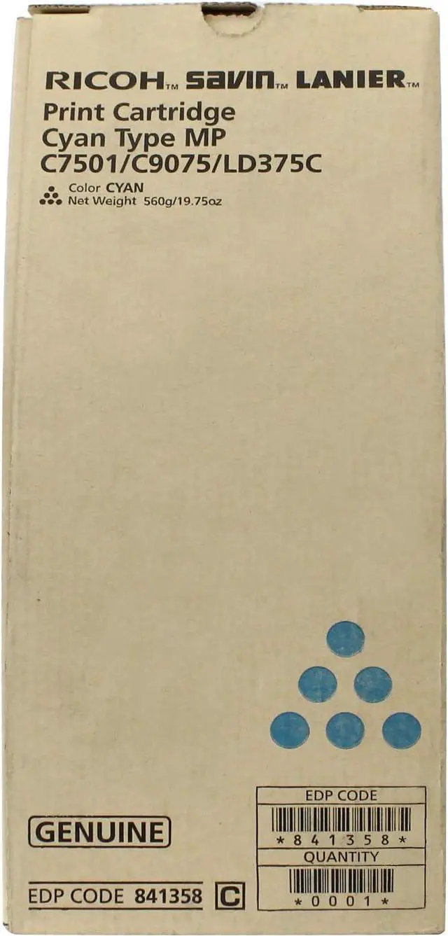 Ricoh Aficio MP C6501 C7501 Lanier LD365C 375C Savin C9065 C9075 Cyan Toner Cartridge (21 600 Yield). Highly durable.