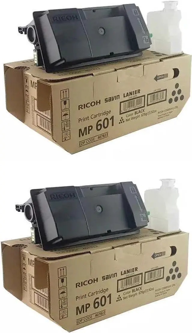 Genuine Ricoh toner cartridge, black 2-pack Each cartridge yields approx. 25000 pages and includes waste toner bottle Works with Ricoh MP 501, 601 Count on Genuine Ricoh toner Supplies to deliver outstanding results and exceptional reliability