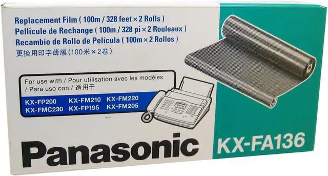 Film roll for plain-paper fax High-quality paper Smudge-free prints Two 100-meter rolls For use with the Panasonic KX-FP200, KX-FM210, KX-FM220, KX-FMC230, KX-FM205, KX-FP195, KX-FP250, KX-FM260, KC-FP270, KX-FM280 fax machines