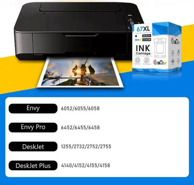 Compatible 67xl hp printer ink For: HP DeskJet 1255, 2732, 2752, 2755, HP DeskJet Plus 4140, 4152, 4155, 4158