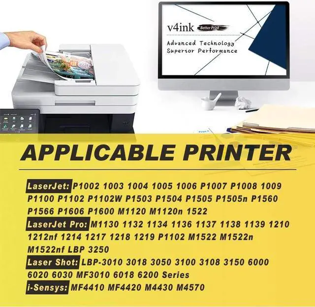 Product Name: V4INK 2 Pack Compatible for HP CE285A 85A CB435A CB436A Toner Cartridge for HP LaserJet Pro P1102w P1006 P1100 MFP MF3010 M1130 M1212nf M1210 M1217nfw Printers