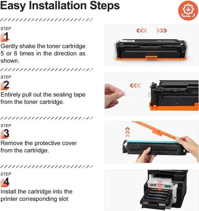 Highly purified toner assures the long-lasting character of the cartridge which allows it to produce more pages comparing to similar products at a fraction of the cost. Page Yield: 2400 pages per black toner cartridge and 1800 pages per color toner cartridge at 5% Coverage of letter/A4.