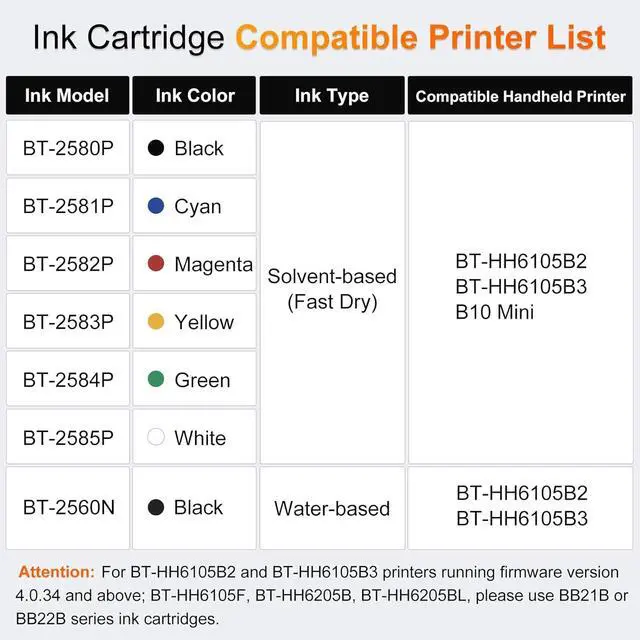 BT-2580P only works with BT-HH6105 series printers (B2/B3)
