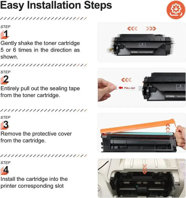 Highly purified toner assures the long-lasting character ofthe cartridge which allows it to produce more pages comparing to similarproducts.