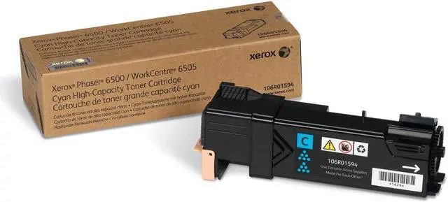 Xerox Genuine Phaser 6500/Workcentre 6505 Cyan High Capacity Toner Cartridge (2,500 Pages) - 106R01594 is specially formulated and tested to provide the best image quality and most reliable printing you can count on page after page. Xerox Genuine Supplies and Xerox equipment are made for each other. Accept no imitations.Compatible toners may risk breakdown of Xerox printers and result in poor print quality and weak colours. With over 75 years' experience, Genuine Xerox Supplies are something you can rely on.