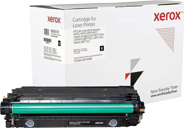 Everyday Black Toner compatible with HP 508A (CF360A), Standard Capacity, For use in HP Color LaserJet Enterprise M552, M553, MFP M577. The cost-effective, quality alternative to OEM cartridges. Xerox Everyday Toner's work as beautifully as the original cartridge and you can save up to 40 Percent compared to the OEM toner. Everyday Toner is manufactured to Xerox standards and triple-tested to ensure a premium experience. Provides sharp images and rich colours from the first to the very last page. Does not invalidate your printers warranty and comes with its own Lifetime Warranty