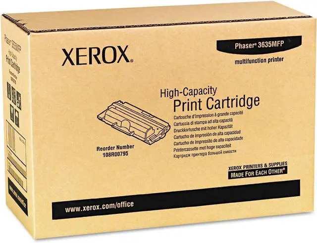 Xerox Genuine Phaser 3635MFP Black High Capacity Toner Cartridge - 108R00795 is specially formulated and tested to provide the best image quality and most reliable printing you can count on page after page. Xerox Genuine Supplies and Xerox equipment are made for each other. Accept no imitations.Compatible toners may risk breakdown of Xerox printers and result in poor print quality and weak colours. With over 75 years' experience, Genuine Xerox Supplies are something you can rely on.