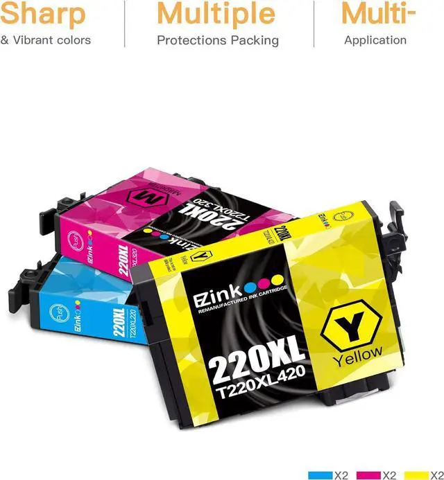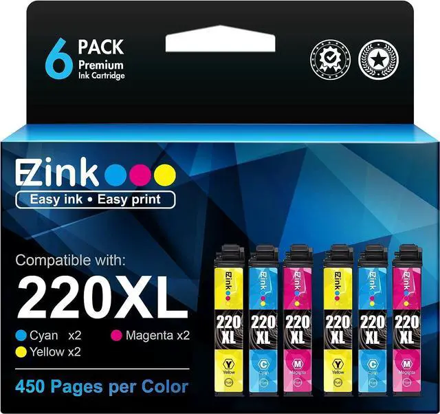 E-Z Ink (TM Remanufactured Ink Cartridge Replacement 220 XL 220XL T220XL to use with WF-2760 WF-2750 WF-2630 WF-2650 WF-2660 XP-320 XP-420 XP-424 (2 Cyan, 2 Magenta, 2 Yellow, 6 Pack)