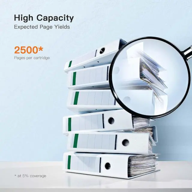 High Capacity:Black is 2,500 pages per cartridge at 5% coverage