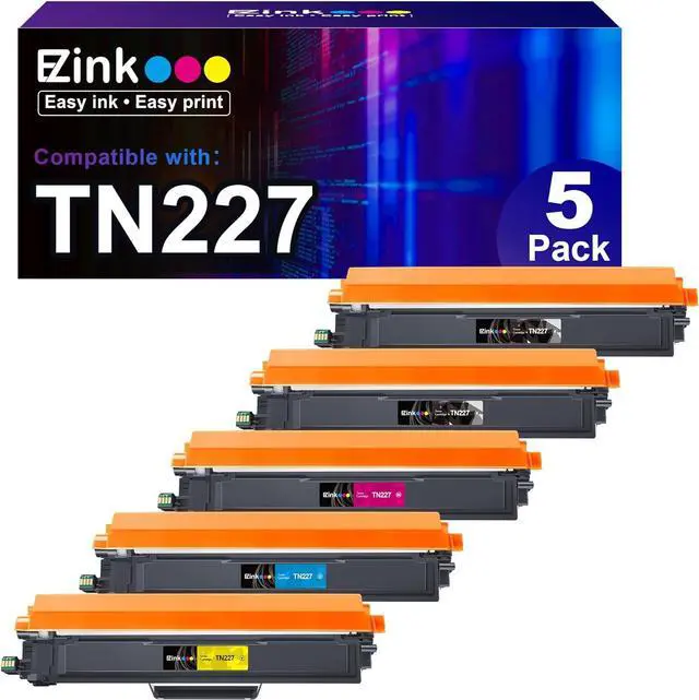 Package Contents: 1 x User Guide, 2 x TN227BK Black toner, 1 x TN227C Cyan toner, 1 x TN227M Magenta toner, 1 x TN227Y Yellow toner (Total 5 Pack With Chip)