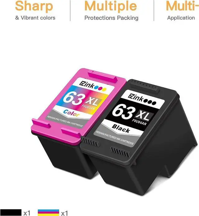 Next page4.4 out of 5 stars63XL Ink Cartridges Replacement for HP Ink 63 XL HP63 HP63XL for HP OfficeJet 3830 3833 4650 4655 5255 5258 Envy 4520 4512 4516 DeskJet 1112 2130 3630 3622 3632 Printer (Black Tri-Color, 2 Combo Pack)