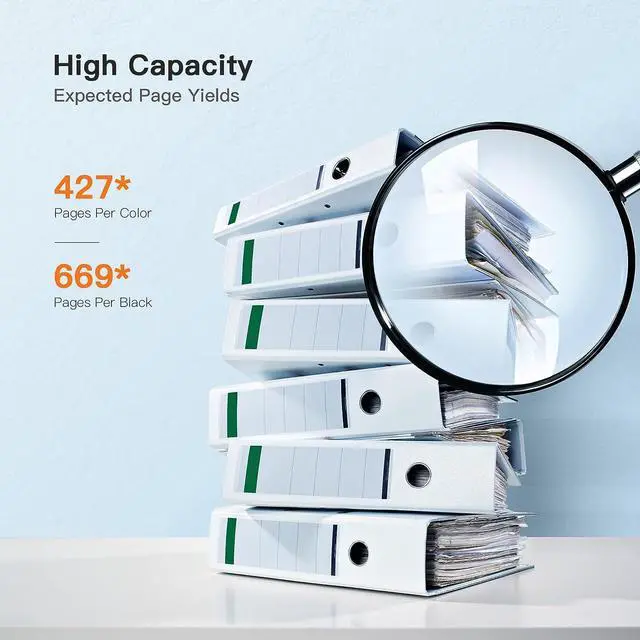 Black is 669 pages per cartridge and Color is 427 pages per cartridge at 5% coverage.