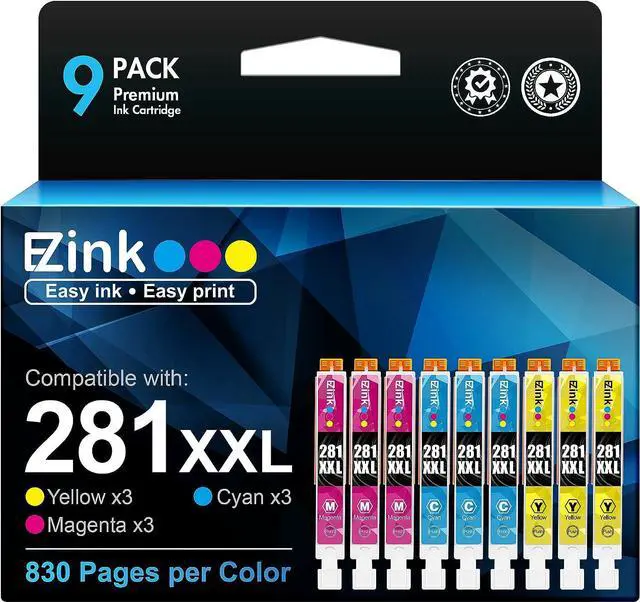 Package Contents: 1 x User Guide, 3 x 281XXL Cyan, 3 x 281XXL Magenta, 3 x 281XXL Yellow ( Total 9 Pack)