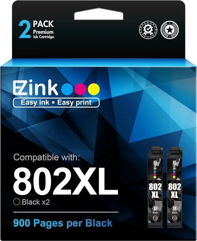 Product Name: E-Z Ink remanufactured high yield ink cartridges replacement for Epson 802XL 802 XL T802XL T802 XL black ink cartridges