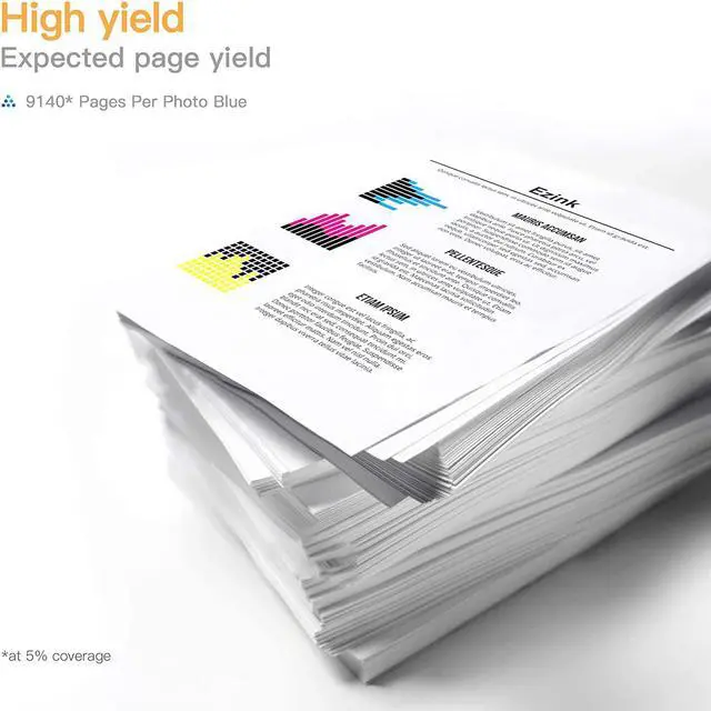 High Capacity: PB (Photo Blue) is 9140 pages per cartridge (@ 5% coverage)
