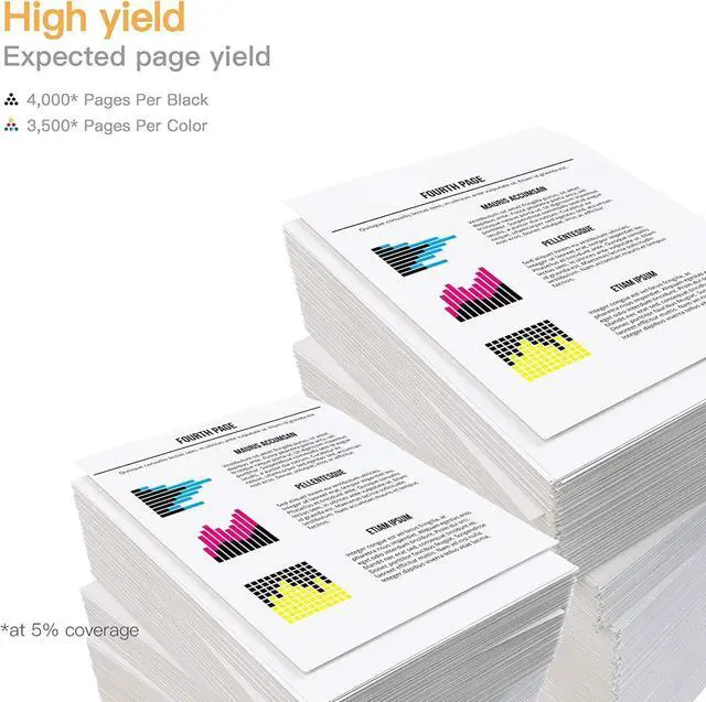 Page Yield: Black is 4000 pages per cartridge and Color is 3500 Pages per cartridge at 5% coverage
