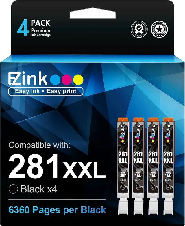 Product Name: E-Z Ink compatible ink cartridges replacement for High Yield Canon CLI-281XXL Package Contents: 4 x Small Black 281XXL, 1 x User Guide ( This is not an OEM product ) Printer Compatibility: Canon TR7520, Pixma TR8520, TR8620, TR8622 TS6120, TS8222, TS8320, TS8322, TS8120, TS9120TS8220, TS6220, TS9520, TS6300, TS6320, TS9521C, TS702, TS9100, TR8500, TR7500 Inkjet Printer