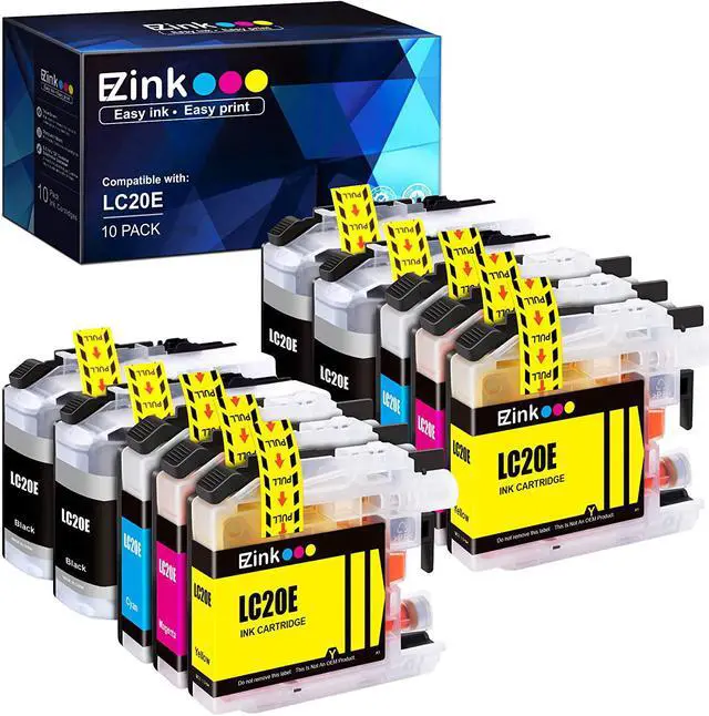 Product Name: Compatible LC20E Ink Cartridge Replacement Size&Color: 4 x Black LC20E, 2 x Cyan LC20E, 2 x Magenta LC20E, 2 x Yellow LC20E Printer Compatibility: Tips: Please confirm your PRINTER MODEL #. MFC-J985DW MFC-J775DW MFC-J5920DW MFC-J985DWXL MFC-J775DWXL Page Yield: 2400 pages per black cartridge and 1200 pages per color cartridge (at 5% coverage) Product Details: Specifications: Precise specifications ensure proper installation. Compatibility: The intelligent chips make cartridges work with your printer. Ink Quality: Premium Ink delievers crisp text and graphics. High Performance: Print high-quality documents and color photos.