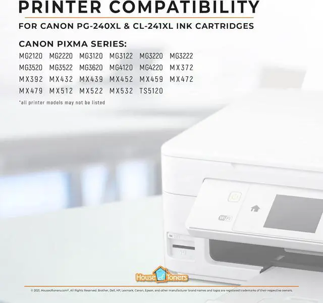 4pk Replacement Canon PG-240XL (Black) & CL-241XL (Color) High Capacity Ink Cartridges / Black: 300 Page Yield; Color: 400 Page Yield / Fits printer models: PIXMA MG2120; PIXMA MG2220; PIXMA MG3120; PIXMA MG3122; PIXMA MG3220; PIXMA MG3222; PIXMA MG3520; PIXMA MG4120; PIXMA MG4220; PIXMA MX372; PIXMA MX392; PIXMA MX432; PIXMA MX439; PIXMA MX452; PIXMA MX459; PIXMA MX472; PIXMA MX512; PIXMA MX522; PIXMA MX532.