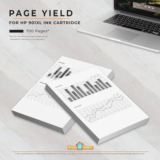 HIGH-YIELD BLACK INK: This Houseoftoner remanufactured HP 901XL black ink cartridge boasts a high-yield capacity for black ink, providing more pages per cartridge and reducing the need for frequent replacements.