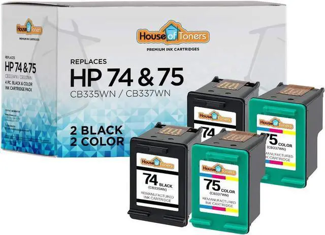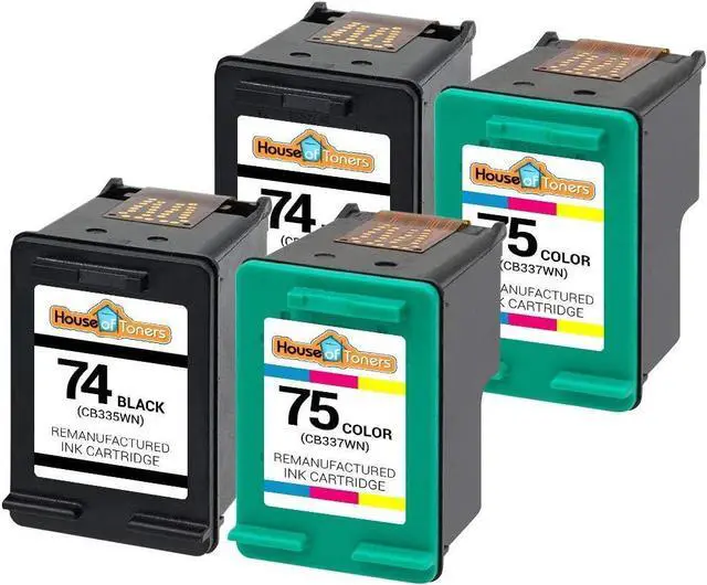 Houseoftoners Remanufactured for HP 74 and 75 Ink Cartridge High Yield Replacement for HP Officejet J6405 J6410 J6413 J6415 J6450 J6480 J6488 4 Pack (2-Black & 2-Tri-Color)
