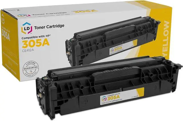 Save and print even more when you shop with LD Products! Item Set Includes: Toner Cartridge Replacement for HP CE412A HP305A (Yellow , 1-Pack). Why pay twice as much for brand name HP 305X/A cartridge when our Compatible printer supplies deliver excellent quality results for a fraction of the price? Our Compatible cartridges for Hewlette-Packard are backed by a full 2 year 100% satisfaction guarantee. So stock up now and save even more! This is not a remanufactured cartridge and it was not manufactured by HP. This set works in the following HP LaserJet Pro 300 and 400 printers: Color MFP M375nw, Color M451dn, M451dw, MFP M451nw, MFP M475dn, and MFP M475dw. Enjoy the best prices on our top-rated printer ink cartridge replacements. Repeat Customers LOVE our printer cartridges! Take advantage of even bigger savings when you shop high yield ink cartridges that allow you to print more pages. Keep printing with lower prices on HP ink cartridge replacements. We offer printer cartridges even for hard-to-find printer models. Shop on a lower price for this popular brand. These delivers Clarity and Vibrance on your prints. Long lasting ink formula, a good use at home, office or when you're running a business, refilled with a professionally manufactured pigment-based ink formula for archival print life and color stability before being put through a rigorous testing process where it was monitored for quality and reliability. Knowing which printer model uses ink cartridges most efficiently can save you a ton of money in the long run. Please note, retail packaging may vary and these cartridges will only work with printers purchased within the United States and Canada. The use of compatible cartridges does not void your printers warranty and does not manufactured by HP. We are the exclusive reseller of LD Products brand of high quality printing supplies.